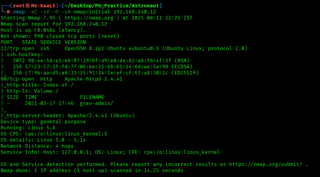 nmap -sC -sV -O -oA nmap/initial 192.168.240.12