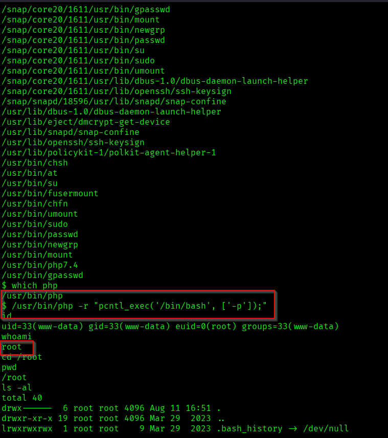 with the setuid bit set and checked for php version and then I checked on GTFOBins for that.