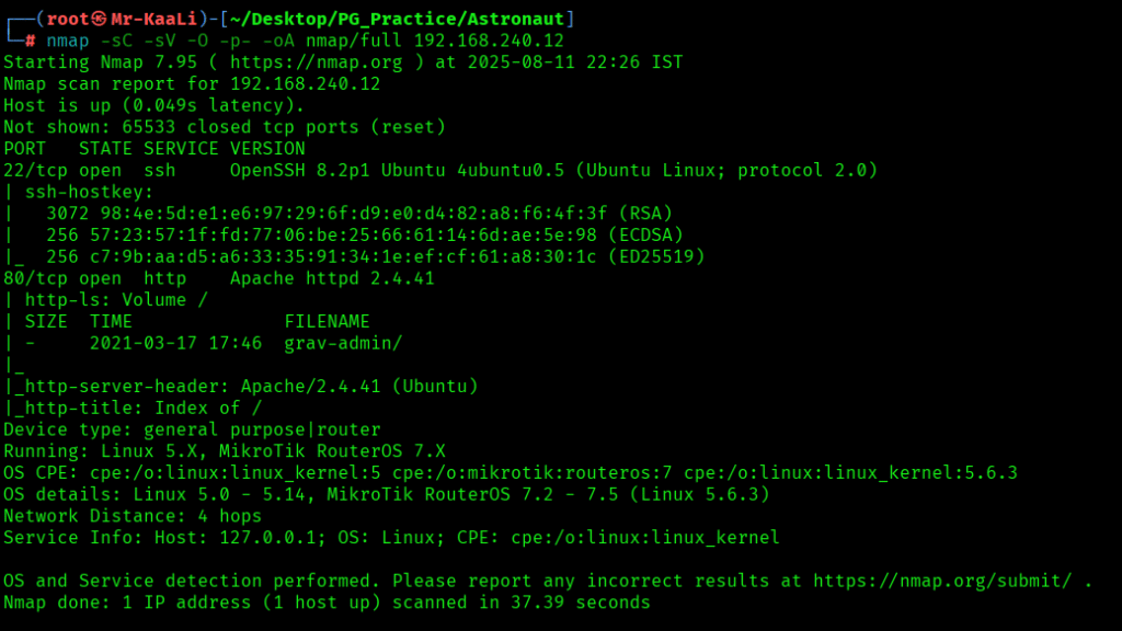 nmap -sC -sV -O -p- -oA nmap/full 192.168.240.12 -T4