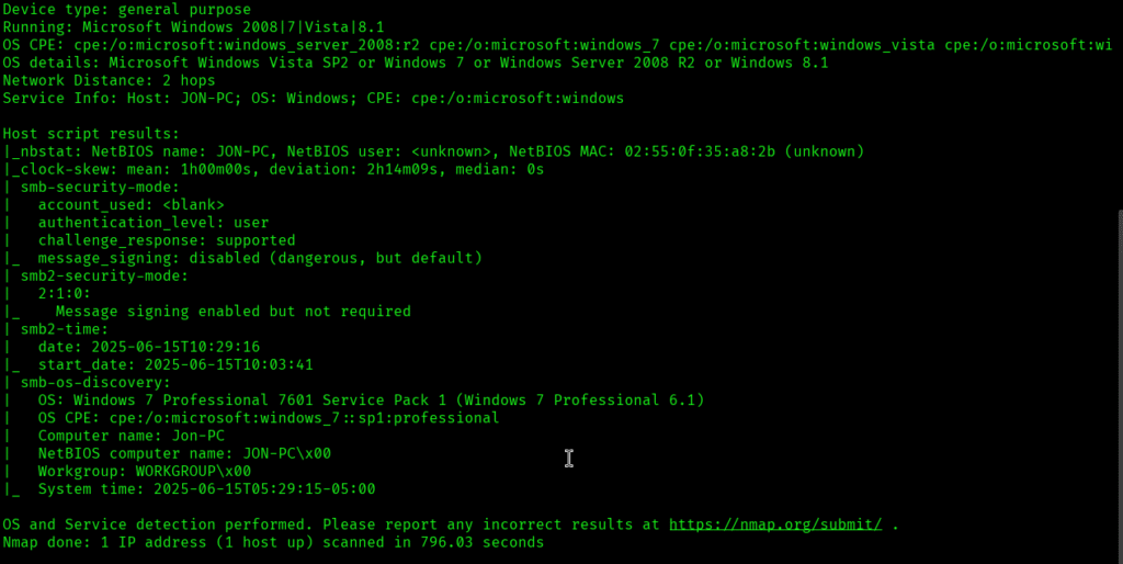 • 445: microsoft-ds Windows 7 Professional 7601 Service Pack 1 microsoft-ds (workgroup: WORKGROUP)
