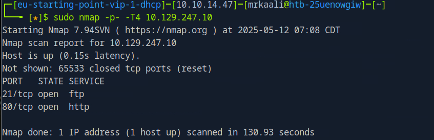 - Task 2 What service version is found to be running on port 21?