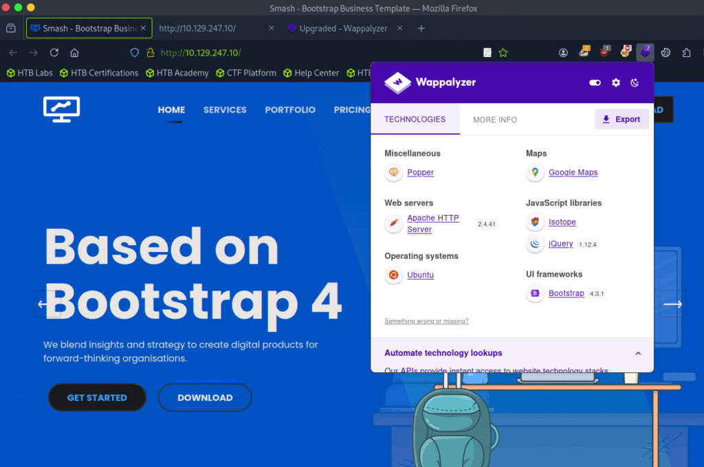 After checking the wappalyzer I got that the site is using PHP, JavaScript, Bootstrap and Apache HTTP Server.