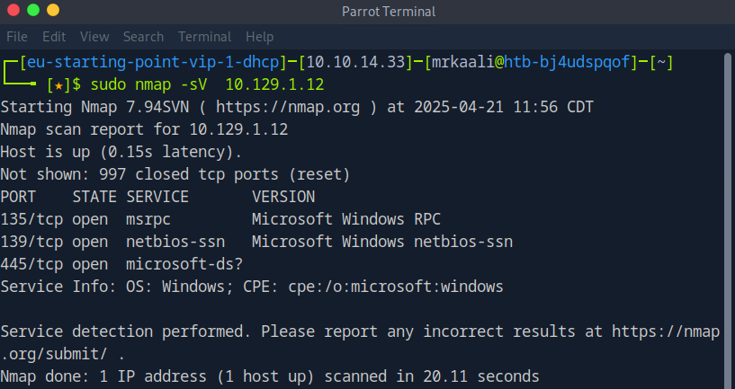 - Task 3 What is the service name for port 445 that came up in our Nmap scan?