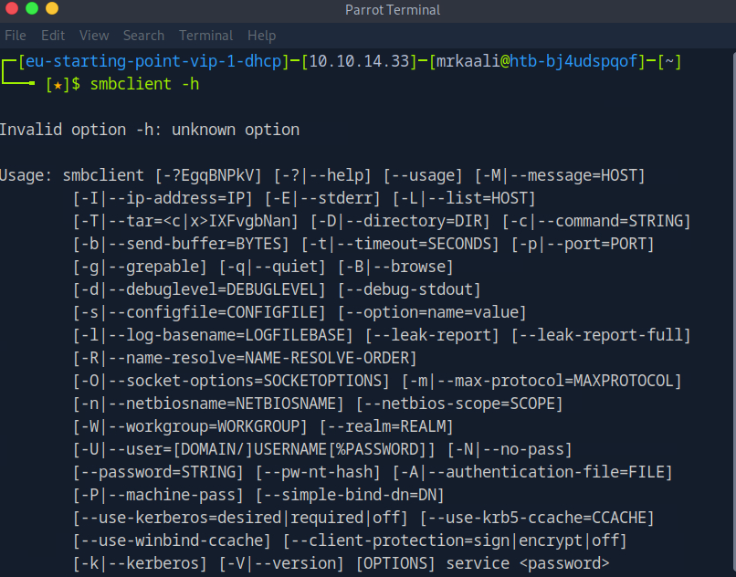 - Task 4 What is the ‘flag’ or ‘switch’ that we can use with the smbclient utility to ‘list’ the available shares on Dancing?
