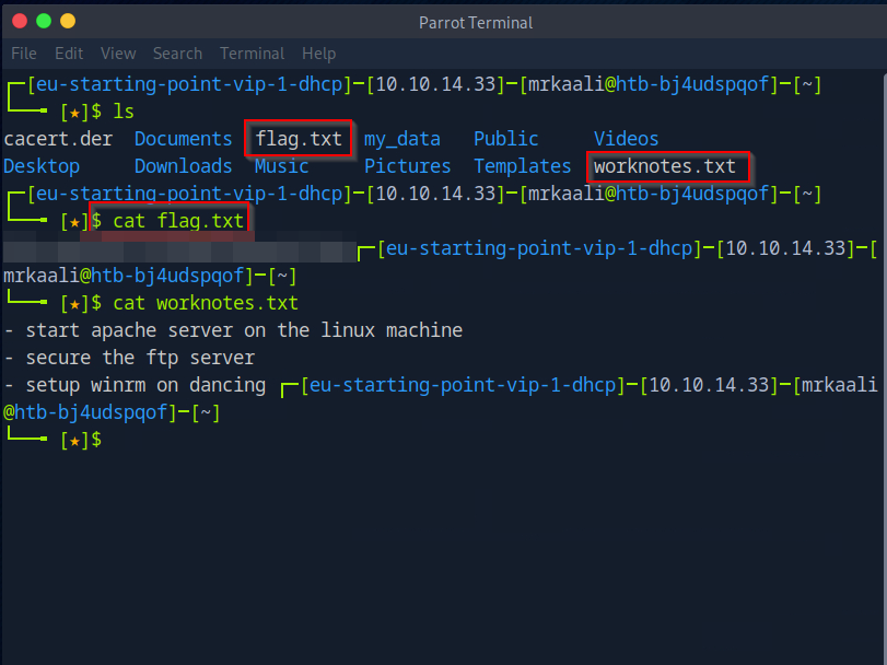 From the below screenshot we can see that we are able to get worknotes.txt and flag.txt