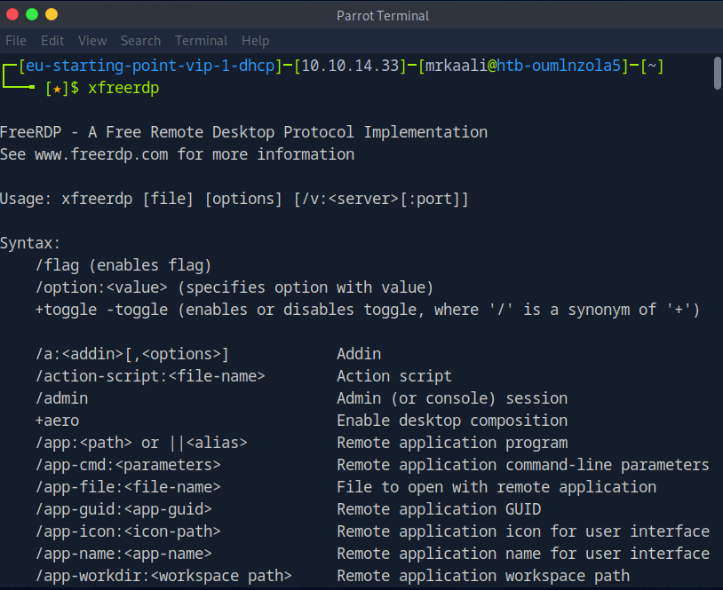- Task 6 What is the switch used to specify the target host’s IP address when using xfreerdp?