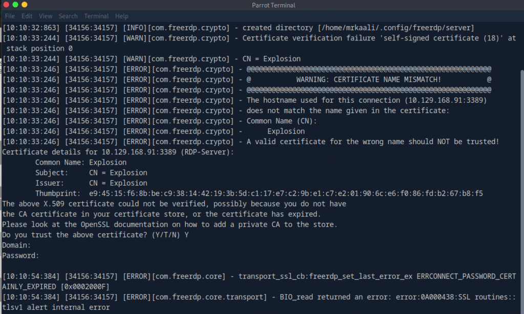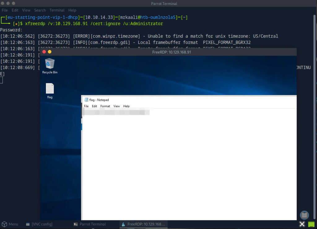 Command: xfreerdp /v:{target_IP} /cert:ignore /u: Administrator.