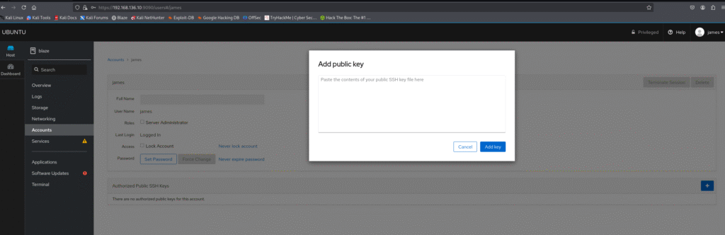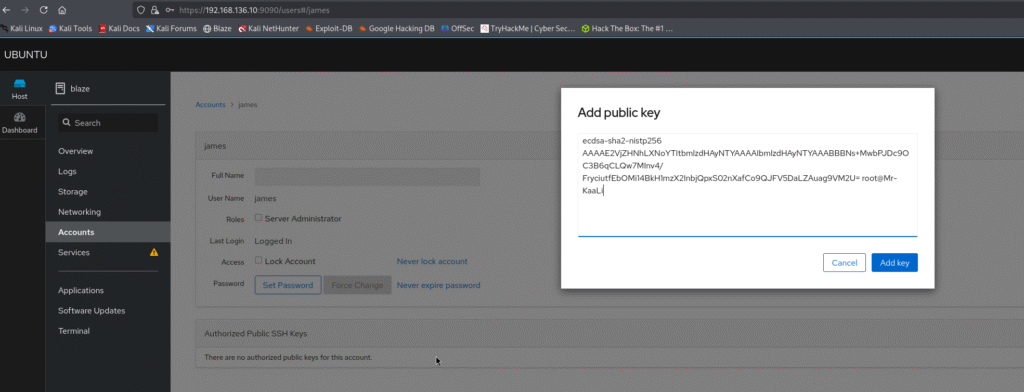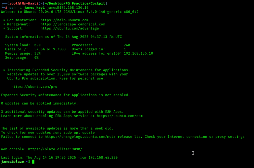 Something didn’t worked right so again generated the key to connect to target as the user James: