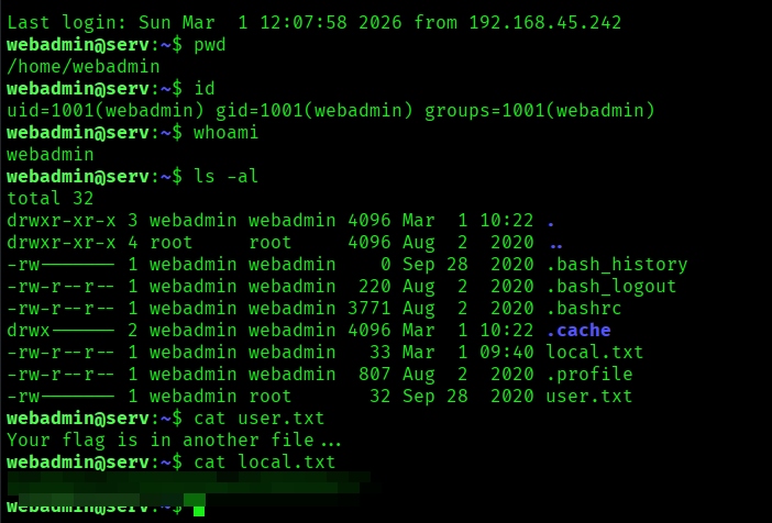 Using the above credentials I got the initial foothold to the user called webadmin: