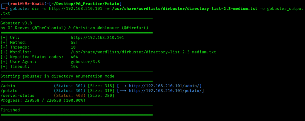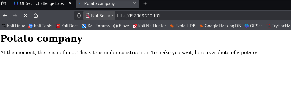 From the gobuster scan I found admin, potato directories and I tried accessing those: