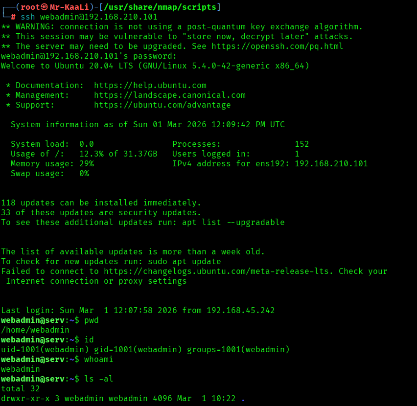 I then exploited a directory traversal weakness by using the path /notes/../home/webadmin/shell.sh. Although this path appears to match the allowed /notes/* pattern, the ../ moves up one directory level, resolving the actual path to /home/webadmin/shell.sh. Since sudo checked only the command pattern and did not properly normalize the path before execution, it allowed the command to run.