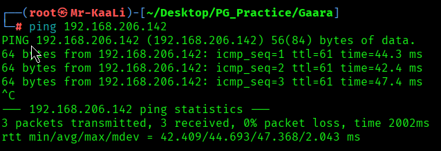 With ping command output we found that the target is reachable.