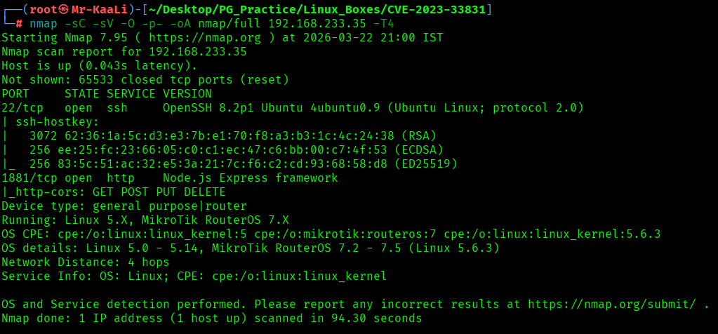 nmap -sC -sV -O -p- -oA nmap/full 192.168.233.35 -T4