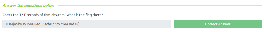 Using the AttackBox, open the terminal and use the nslookup or dig command to get the information you need to answer the following question.