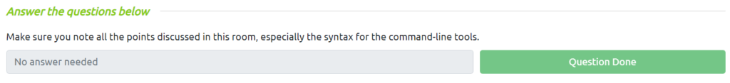 In this room, we focused on passive reconnaissance. In particular, we covered command-line tools, whois, nslookup, and dig. We also discussed two publicly available services DNSDumpster and Shodan.io.