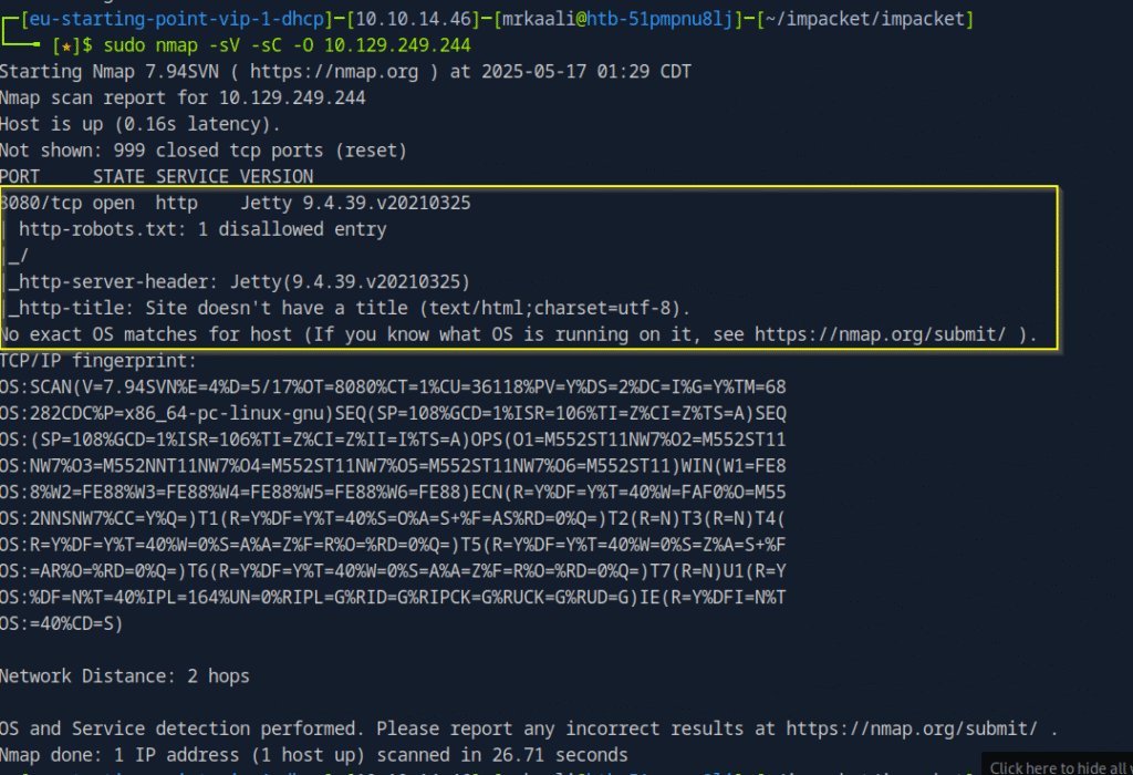 Now let’s move ahead and run the port scan for which we will be using Nmap a popular tool for port scanning and it will provide details of the various ports which are in Open state. The command for that will be: