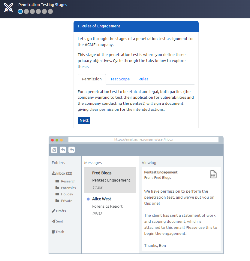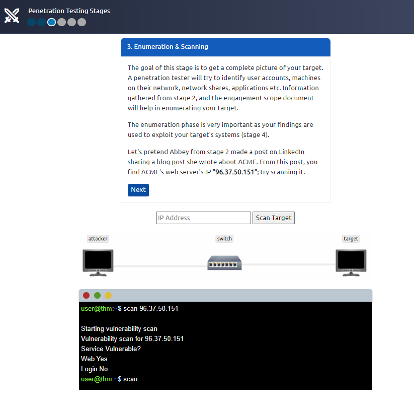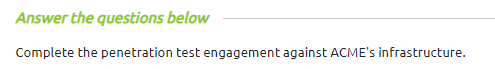 ACME has approached you for an assignment. They want you to carry out the stages of a penetration test on their infrastructure. View the site (by clicking the green button on this task) and follow the guided instructions to complete this exercise.