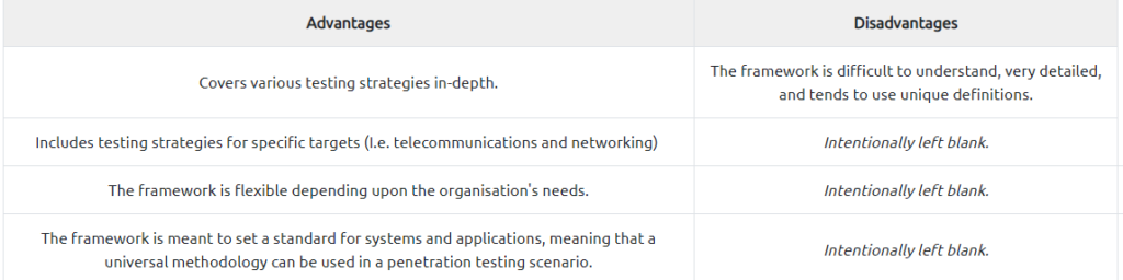 The framework provides guidelines on security controls & benchmarks for success for organisations from critical infrastructure (power plants, etc.) all through to commercial. There is a limited section on a standard guideline for the methodology a penetration tester should take.
