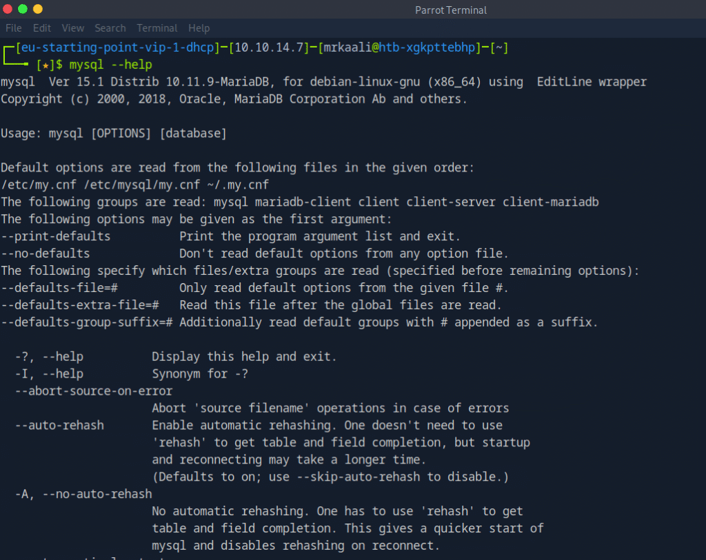 - Task 3 When using the MySQL command line client, what switch do we need to use in order to specify a login username?