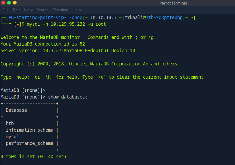 - Task 4 Which username allows us to log into this MariaDB instance without providing a password?