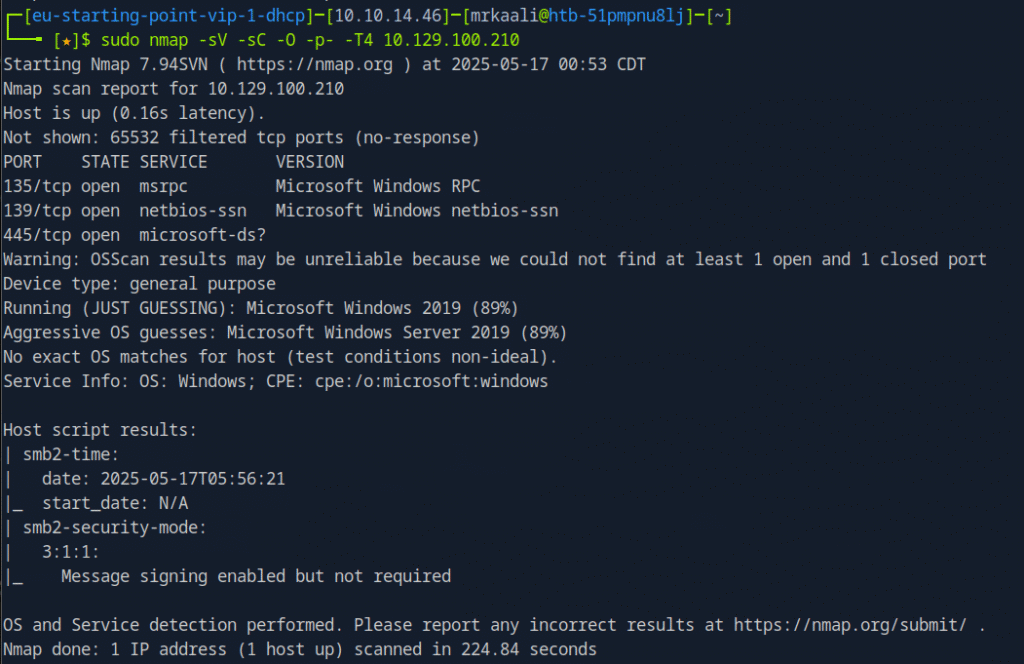 sudo nmap -sV -sC -O -p- -T4 Target_IP