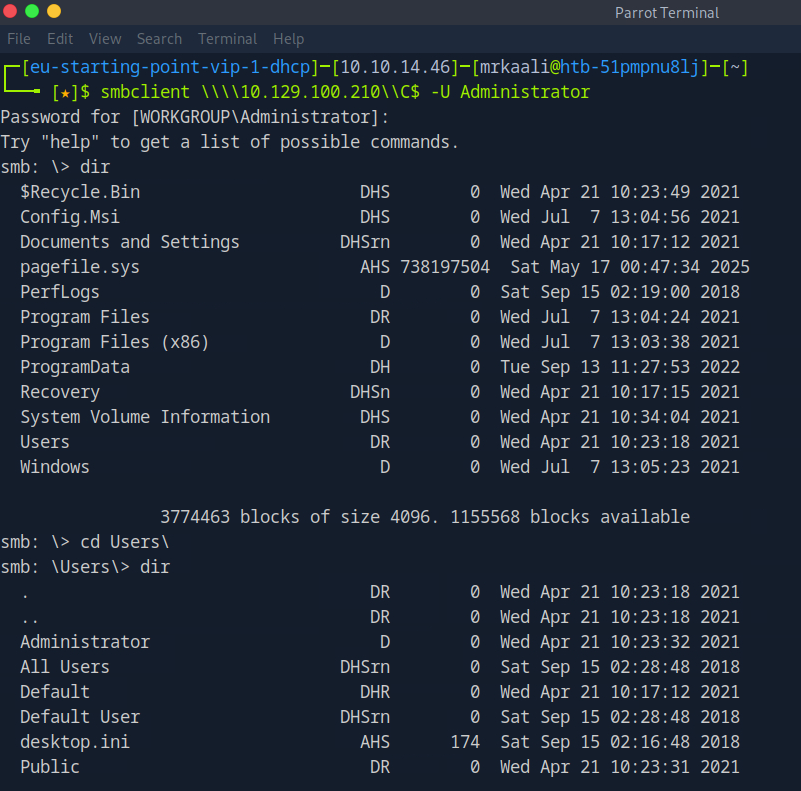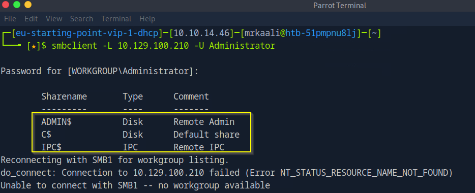 Now let’s move ahead and use smbclient to connect to available shares.