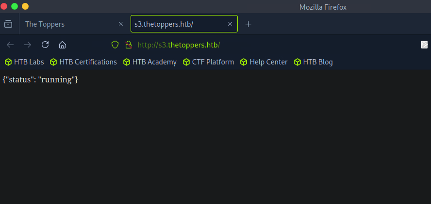 We found two results. One of them was s3.thetoppers.htb. Let’s also add anentry for this sub-domain in the /etc/hosts file.