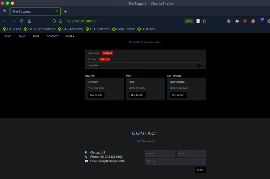 Let’s add an entry for thetoppers.htb in the /etc/hosts file with the corresponding IP address to be able