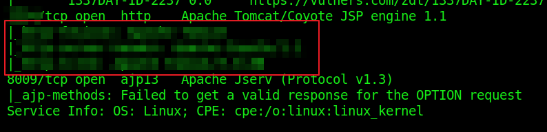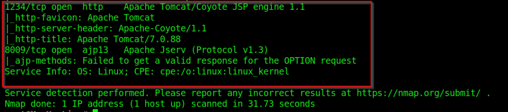 1234/TCP HTTP running Apache Tomcat/Coyote JSP engine 1.1