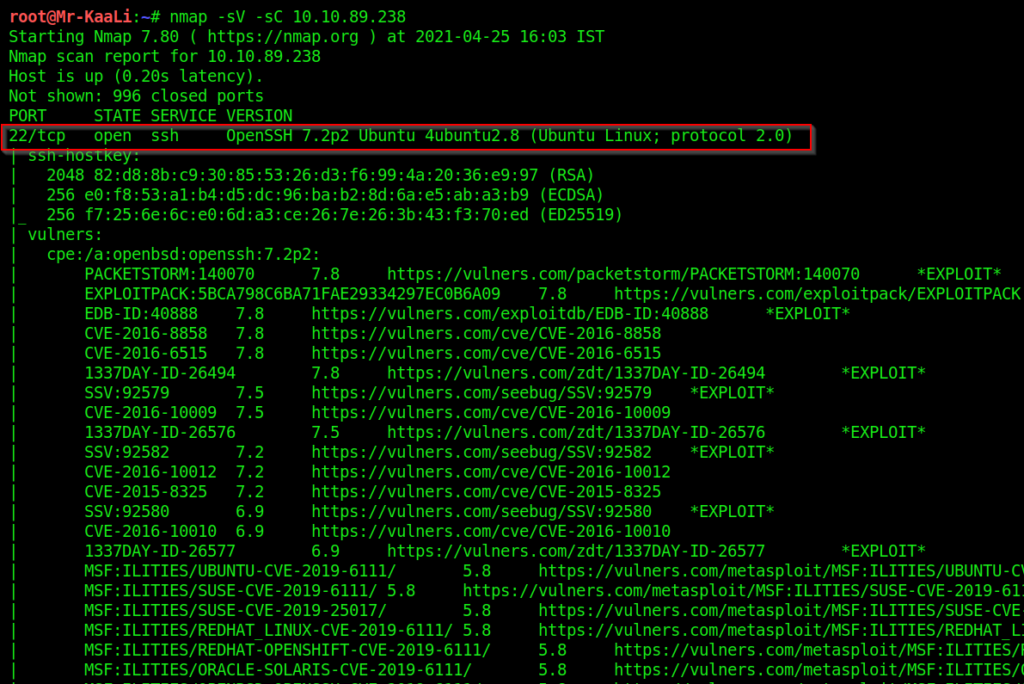 22/TCP SSH running OpenSSH 7.2p2 Ubuntu 4ubuntu2.8 (Ubuntu Linux; protocol 2.0)