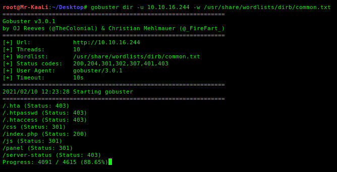 Find directories on the web server using the GoBuster tool.